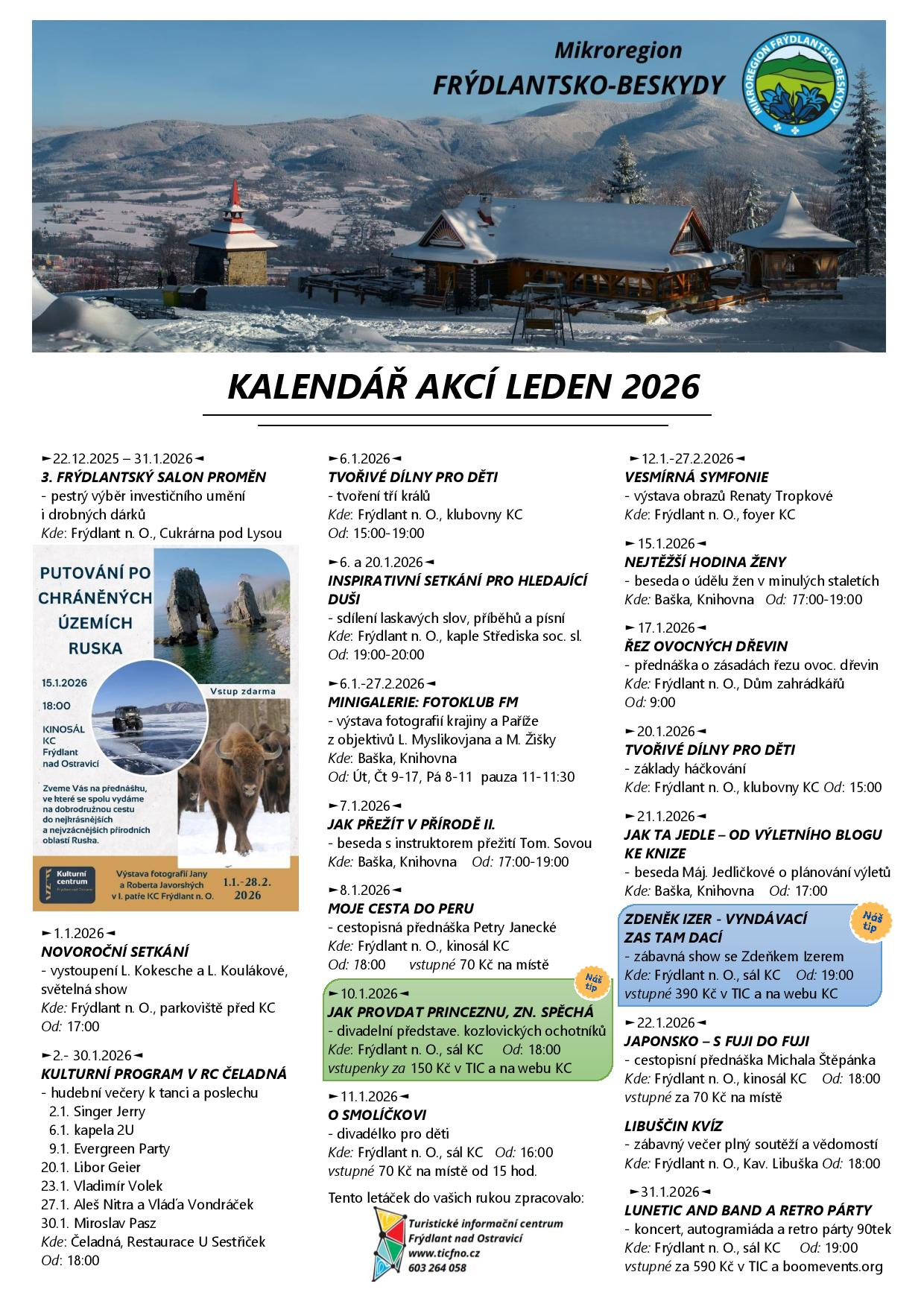 Kalendář akcí Frýdlantsko - Beskydy na leden