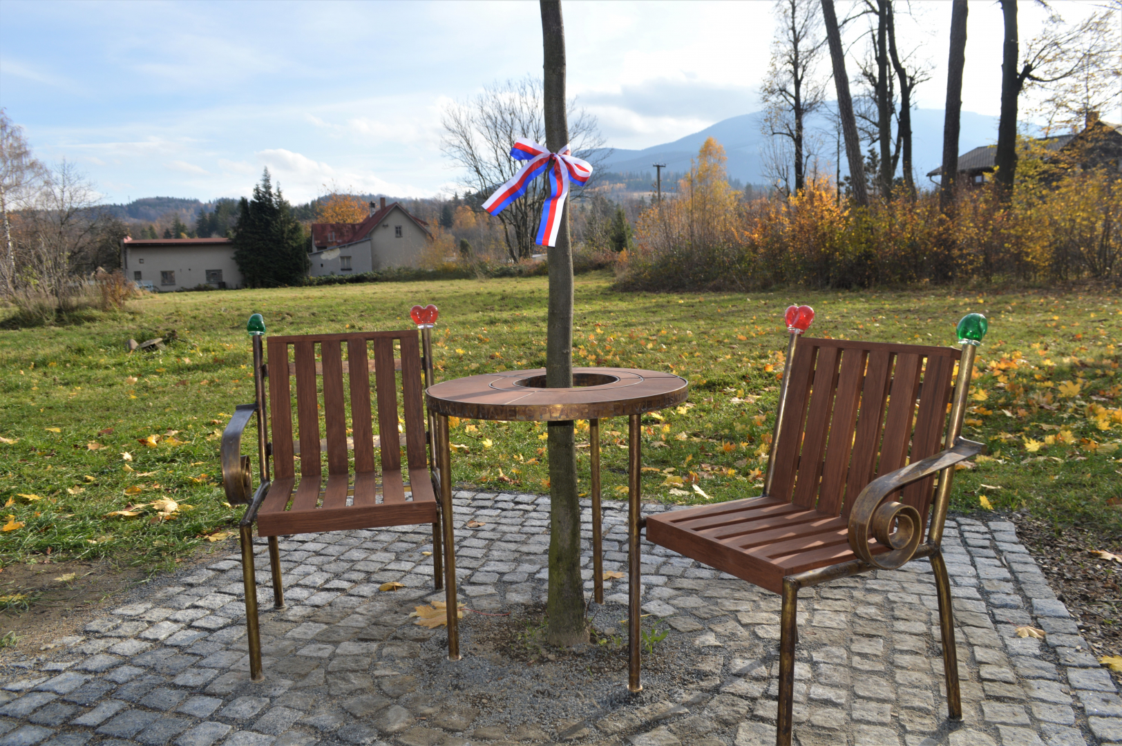 Tento originální design navrhl architekt a designér Bořek Šípek v rámci celosvětového projektu iniciovaného českým velvyslancem v USA Petrem Gandalovičem. V Čeladné byla lavička odhalena v roce 2019 jako 32. instalace tohoto typu a první v Moravskoslezském kraji. Nachází se v blízkosti restaurace Na Rozcestí, kde doplňuje lípu vysazenou v roce 2018 na počest 100. výročí vzniku republiky.